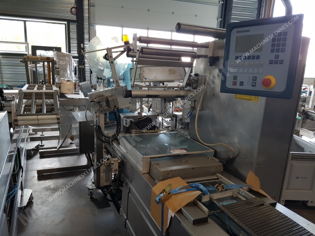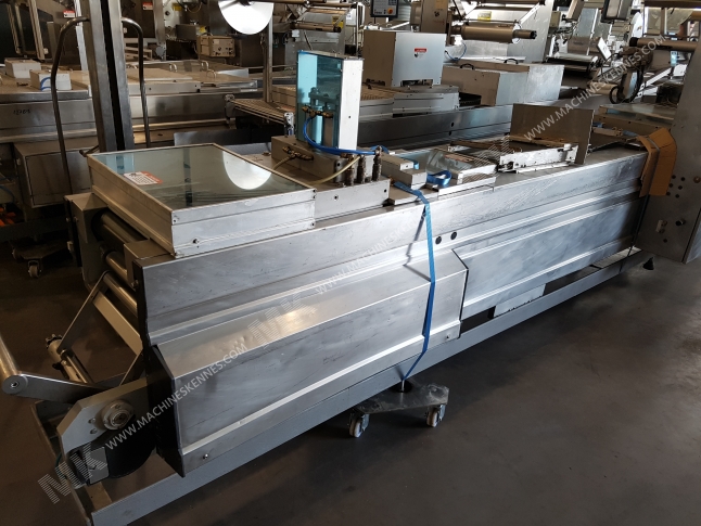 This used Multivac R230 Thermoformer is built in 1998. The machine has a film width of 320mm and there is a dye set on the machine with an exit of 195mm. The format is now divided in a 4.1 format. The machine is equipped with 1 format. This format can be used for Rigid film packaging. The format has a stamp. The frame of the machine is currently 6200mm long, but we can always adjust this to the dimension you need.