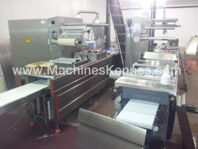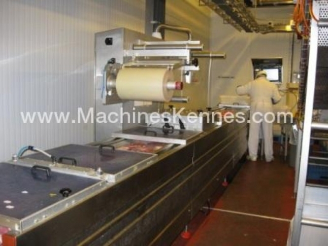 This used Repak RE3 Thermoformer is built in 2003. On the PLC in the machine is standing 3875 operating hours. The machine has a film width of mm and there is a dye set on the machine with an exit of mm. The format is now divided in a format. The machine is equipped with formats. These formats can be used for packaging. The format does not have a stamp. The frame of the machine is currently mm long, but we can always adjust this to the dimension you need.