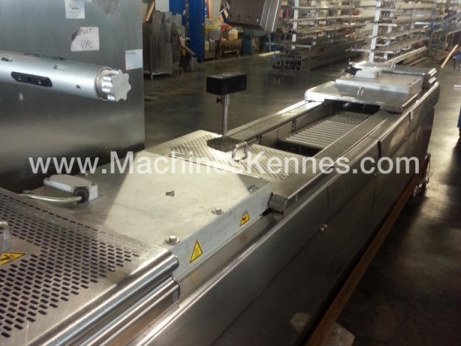 Dieser gebrauchte Multivac R535 Tiefziehmaschine Maschine ist in 2008 gebaut. Auf der SPS in der Maschine stehen 3125 Betriebsstunden. Die Maschine hat eine Filmbreite von mm, auf der Maschine ist einem Ausgang von mm jetzt. Das Format wird jetzt in einem Format geteilt. Die Maschine ist mit Formate ausgestattet. Diese Formate können für verpackungen verwendet werden. Das Format hat keinen Stempel. Der Rahmen der Maschine ist jetzt mm lang, aber wir können immer dieses an die Abmessung justieren, die Sie benötigen.
