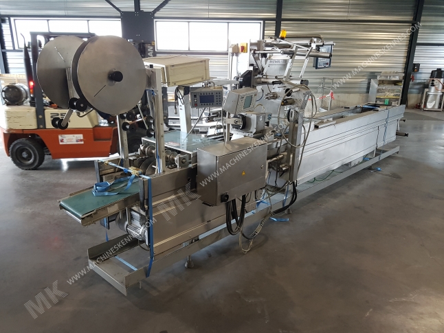 This used Multivac R230 Dieptrekmachine is built in 1998. The machine has a film width of 320mm and there is a dye set on the machine with an exit of 195mm. The format is now divided in a 3.1 format. The machine is equipped with formats. These formats can be used for packaging. The format has a stamp. The frame of the machine is currently 5700mm long, but we can always adjust this to the dimension you need.