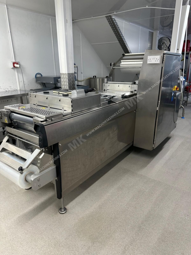 This used Multivac R085 Thermoformer is built in 2016. The machine has a film width of 420mm and there is a dye set on the machine with an exit of 200mm. The format is now divided in a 2.1 format. The machine is equipped with 1 format. This format can be used for Soft and Rigid Film packaging. The format does not have a stamp. The frame of the machine is currently 2500mm long, but we can always adjust this to the dimension you need.