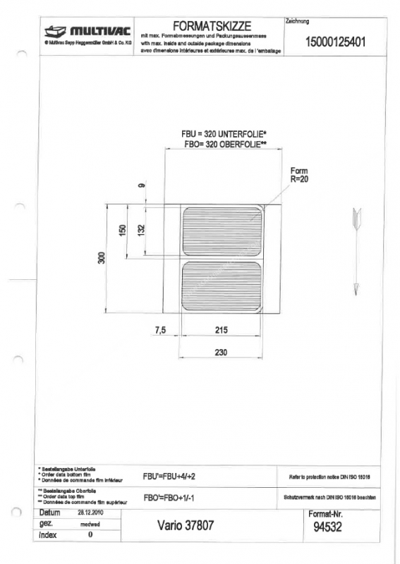 This used Multivac R145 Thermoformer is built in 2011. The machine has a film width of 320mm and there is a dye set on the machine with an exit of 300mm. The format is now divided in a 1.1 format. The machine is equipped with 3 formats. These formats can be used for Soft and Rigid Film packaging. The format does not have a stamp. The frame of the machine is currently 3500mm long, but we can always adjust this to the dimension you need.