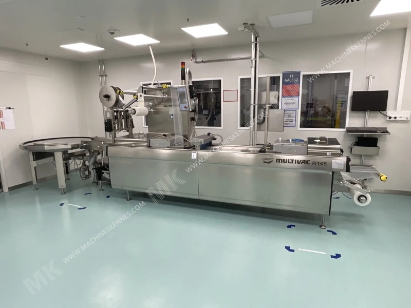 This used Multivac R145 Thermoformer is built in 2016. The machine has a film width of 320mm and there is a dye set on the machine with an exit of 205mm. The format is now divided in a 7.1 format. The machine is equipped with 1 format. This format can be used for Soft Folie packaging. The format does not have a stamp. The frame of the machine is currently 3500mm long, but we can always adjust this to the dimension you need.
