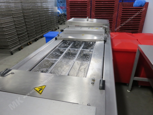 This used Multivac R145 Thermoformer is built in 20**. The machine has a film width of 420mm and there is a dye set on the machine with an exit of 280mm. The format is now divided in a 1.2 format. The machine is equipped with 2 formats. These formats can be used for Soft Folie packaging. The format does not have a stamp. The frame of the machine is currently 4000mm long, but we can always adjust this to the dimension you need.