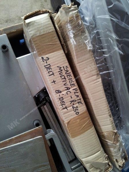 Dieser gebrauchte Multivac R230 Tiefziehmaschine Maschine ist in 2001 gebaut. Die Maschine hat eine Filmbreite von 420mm, auf der Maschine ist einem Ausgang von 270mm jetzt. Das Format wird jetzt in einem 4.2 Format geteilt. Die Maschine ist mit 4 Formate ausgestattet. Diese Formate können für Weich & Hartfoilverpackungen verwendet werden. Das Format hat keinen Stempel. Der Rahmen der Maschine ist jetzt 8400mm lang, aber wir können immer dieses an die Abmessung justieren, die Sie benötigen.