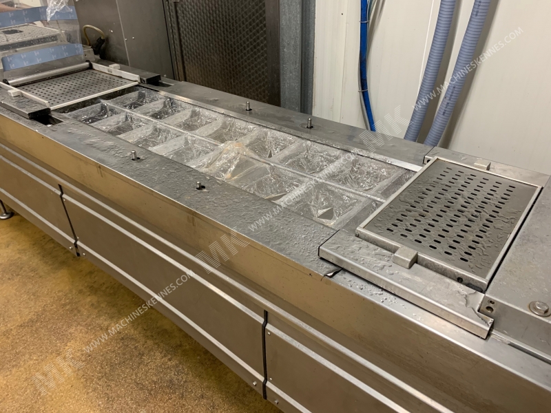 Dieser gebrauchte Multivac R240 Thermoformer Maschine ist in 2004 gebaut. Die Maschine hat eine Filmbreite von 420mm, auf der Maschine ist einem Ausgang von 400mm jetzt. Das Format wird jetzt in einem 2.2 Format geteilt. Die Maschine ist mit 3 Formate ausgestattet. Diese Formate können für Weich Foilverpackungen verwendet werden. Das Format hat keinen Stempel. Der Rahmen der Maschine ist jetzt 6350mm lang, aber wir können immer dieses an die Abmessung justieren, die Sie benötigen.