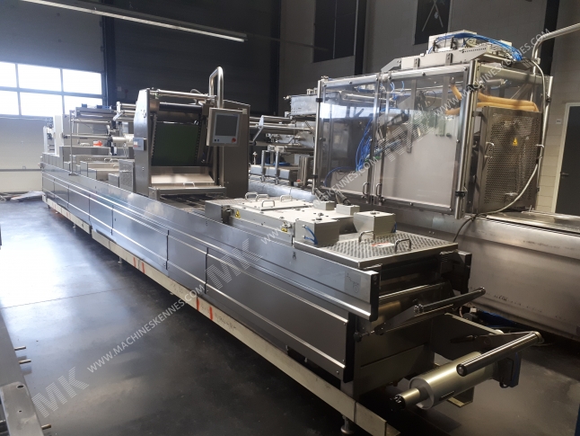 Dieser gebrauchte Multivac R272 CD Darfresh Tiefziehmaschine Maschine ist in 2008 gebaut. Die Maschine hat eine Filmbreite von 466mm, auf der Maschine ist einem Ausgang von 250mm jetzt. Das Format wird jetzt in einem 3.1 Format geteilt. Die Maschine ist mit 2 Formate ausgestattet. Diese Formate können für Skinverpackungen verwendet werden. Das Format hat keinen Stempel. Der Rahmen der Maschine ist jetzt 10500mm lang, aber wir können immer dieses an die Abmessung justieren, die Sie benötigen.