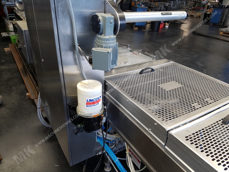 Dieser gebrauchte Multivac R530 Tiefziehmaschine Maschine ist in 2005 gebaut. Die Maschine hat eine Filmbreite von 500mm, auf der Maschine ist einem Ausgang von 560mm jetzt. Das Format wird jetzt in einem 3.3 Format geteilt. Die Maschine ist mit 1 Format ausgestattet. Dieses Format kann für Weich & Hartfoilverpackungen verwendet werden. Das Format hat keinen Stempel. Der Rahmen der Maschine ist jetzt 8500mm lang, aber wir können immer dieses an die Abmessung justieren, die Sie benötigen.