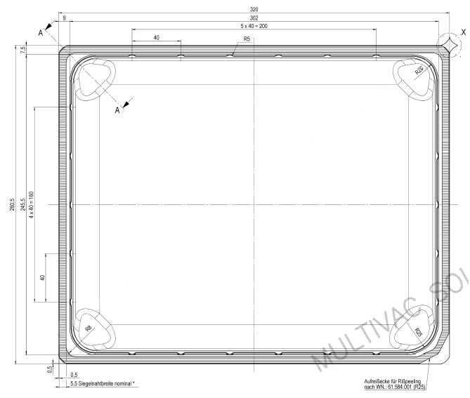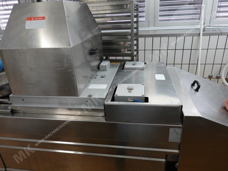 Dieser gebrauchte Multivac R530 Tiefziehmaschine Maschine ist in 2006 gebaut. Die Maschine hat eine Filmbreite von 560mm, auf der Maschine ist einem Ausgang von 320mm jetzt. Das Format wird jetzt in einem 2.1 Format geteilt. Die Maschine ist mit 1 Format ausgestattet. Dieses Format kann für Hartfoilverpackungen verwendet werden. Das Format hat keinen Stempel. Der Rahmen der Maschine ist jetzt 5375mm lang, aber wir können immer dieses an die Abmessung justieren, die Sie benötigen.