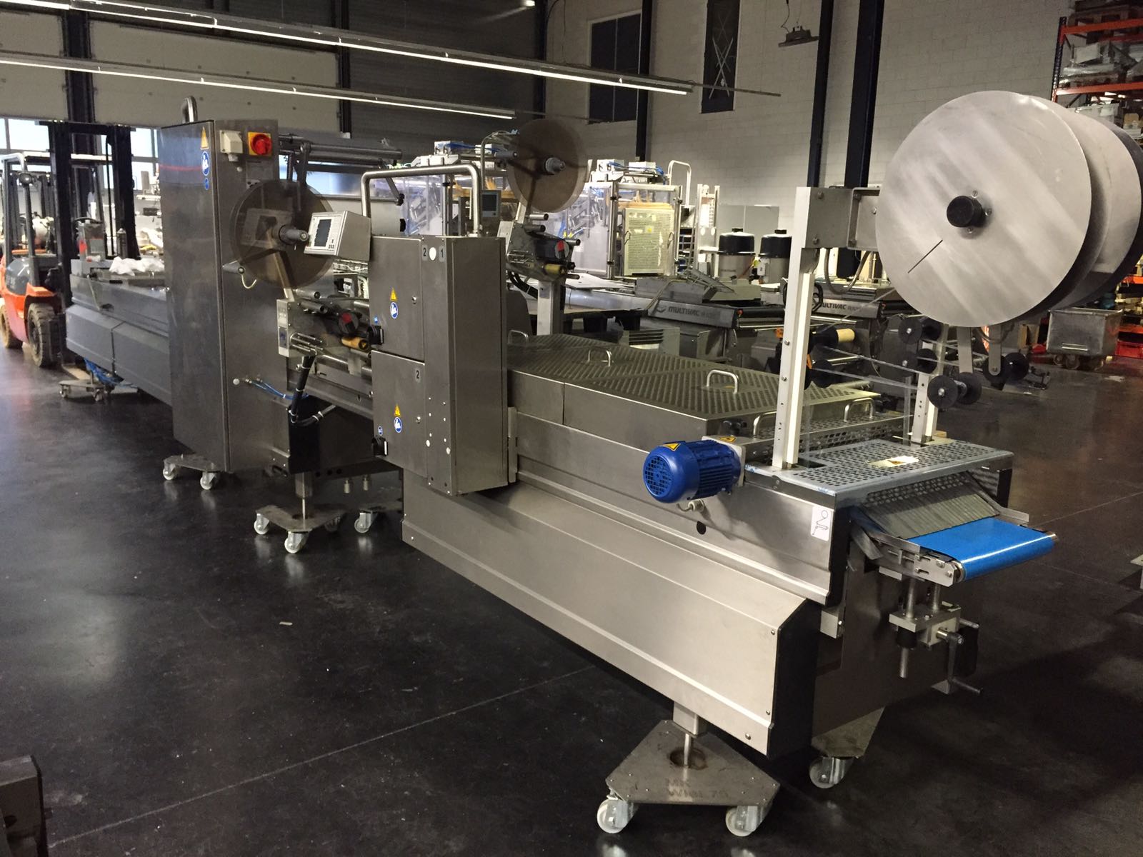 Just one example of a revised Multivac machine by MK Gilze. The machine is completely disassembled and then rebuilt. During the disassembly, photographs are also made that the customer can always receive when he wishes, and the customer is always welcome to check the machine in the meantime. This Multivac R240 is also equipped with 2 used MR label machines. This machine is also completely demounted and then rebuilt. For more information or a machine that we completely revise for you, you can always contact us.
