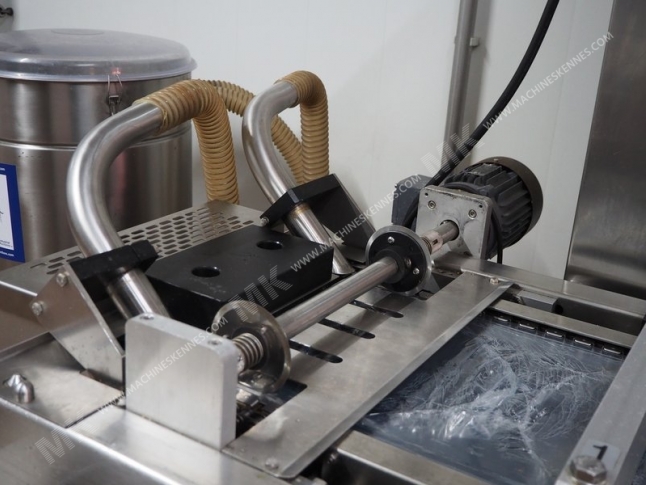 - The machine is equipped with a Round blade axis intersection length cutting.