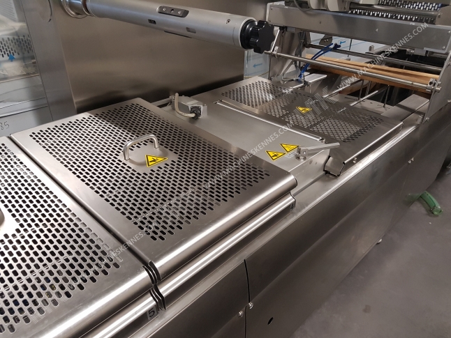 This used Multivac R245 Thermoformer is built in 2010. On the PLC in the machine is standing 261 operating hours. The machine has a film width of 560mm and there is a dye set on the machine with an exit of 250mm. The format is now divided in a 3.1 format. The machine is equipped with 1 format. This format can be used for Rigid film packaging. The format does not have a stamp. The frame of the machine is currently 8500mm long, but we can always adjust this to the dimension you need.