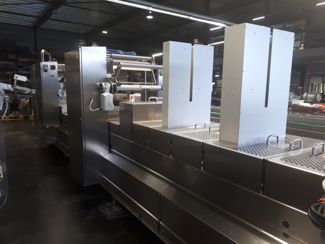 Deze gebruikte Multivac R272 CD Darfresh Dieptrekmachine is van bouwjaar 2008. De machine heeft een foliebreedte van 466mm en er is een formaat geplaatst met een afslaglengte van 250mm. Het formaat is nu opgedeeld in een 3.1 indeling. De machine is voorzien van 2 formaten. Deze formaten kunnen voor Skin verpakkingen gebruikt worden. Het formaat beschikt niet over een stempel. Het frame van de machine is op dit moment 10500mm lang, maar kunnen wij altijd naar wens aanpassen.
