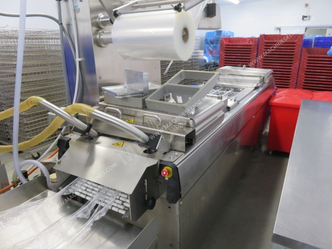 Это б Multivac R145 термоформования построен в 20**. Машина имеет пленку шириной 420мм и на машине есть набор красителя с выходом 280мм. Формат теперь разделен на 1.2 формат. Машина оснащена 2 форматы. Эти форматы может быть использован для Мягкая фольга упаковка. Формат не имеет печать Рама машины на данный момент 4000мм, но мы всегда можем отрегулировать это в соответствии с нужным вам размером.