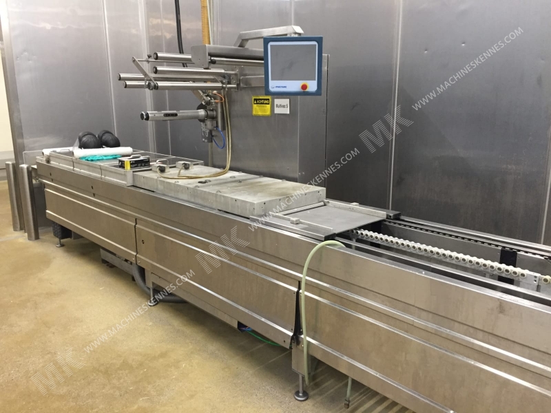 Это б Multivac R530 термоформования построен в 2004. Машина имеет пленку шириной 459мм и на машине есть набор красителя с выходом 700мм. Формат теперь разделен на 2.2 формат. Машина оснащена 1 формат. Этот формат может быть использован для Мягкая фольга упаковка. Формат имеет печать Рама машины на данный момент 11500мм, но мы всегда можем отрегулировать это в соответствии с нужным вам размером.